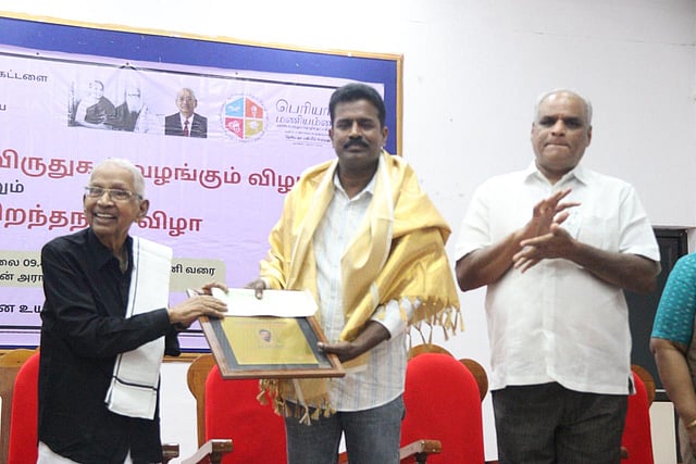 2019 ஆம் ஆண்டு புரட்சிக்கவிஞர் பிறந்த நாள் விழாவில் என் தந்தைக்கு பெரியார் விருது வழங்கினார்கள். இன்று என் நூலுக்கு விருது வழங்கிப் பெருமைப்படுத்தியுள்ளார் அய்யா ஆசிரியர் அவர்கள்.