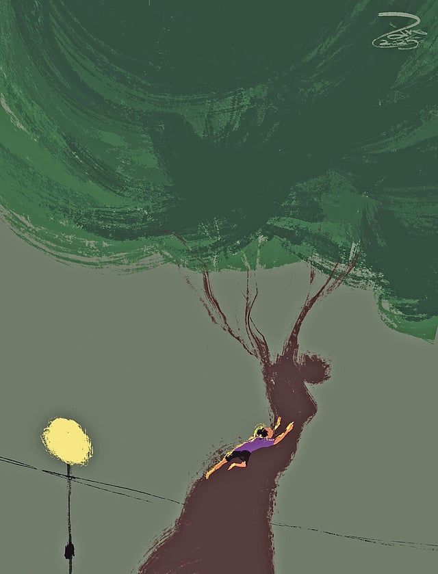 ‘ஒரே பிடிவாதமாய் பட்டம் செய்ய பசை கிண்டித் தரமாட்டேனென்று விட்டாளே... அப்றம் நான் பிசின் எடுக்க மரம் மரமாய் ஏறத்தான் செய்வேன்...' கருவிக்கொண்டிருந்த மனது கூடுதலாய் உந்திய வேகத்துடன் மரத்தின் அந்தக்கிளைநோக்கிப் போய்கொண்டிருந்தான்.