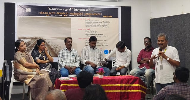 'தங்கள் ஊர்களில் ஜல்லிக்கட்டு, மாடுகள், இயற்கைக் காட்சிகள் என பலர் மார் தட்டிக் கொள்வர். எங்கள் சென்னையிலும் இவை எல்லாம் இருந்தன. தெருவின் நடுவில் ஊரே கூடி பொங்கல் வைப்போம்! கிராமங்களில் இருப்பதாகச் சொல்லும் அத்தனையும் இங்கும் இருந்தன' என மு.து.பிரபாகரன் குறிப்பிட்டார். சென்னையின் மொழி, கலாச்சாரம் என பல விஷயங்களை இந்த உரையாடலில் தொட்டுச் சென்றனர். சென்னைக்கு வந்தபோது முதன் முதலில் கடற்கரைக்குச் சென்று வியந்துபோனதாகவும் பல கனவுக்கோட்டைகள் கட்டியதாகவும் சொன்ன டிஸ்கவரி புக் பேலஸின் உரிமையாளர் வேடியப்பன், ‘அதன் பின்னர் இன்னும் அங்கே போகவே இல்லை’ என வேடிக்கையாகக் குறிப்பிட்டார்.