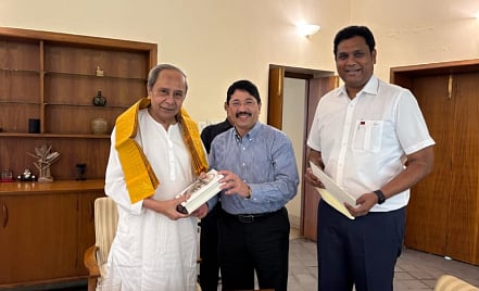 பிஜு ஜனதா தள தலைவர் நவீன் பட்நாயக்குடன் திமுக எம்.பி. தயாநிதி மாறன், அமைச்சர் டிஆர்பி ராஜா