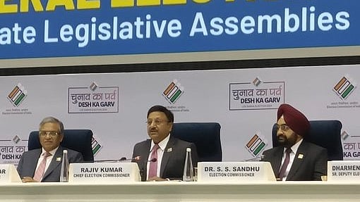 தலைமைத் தேர்தல் ஆணையர் ராஜீவ்குமார், தேர்தல் ஆணையர்கள் ஞானேஸ்குமார், சுக்பீர் சாந்து ஆகியோர் வந்தனர்