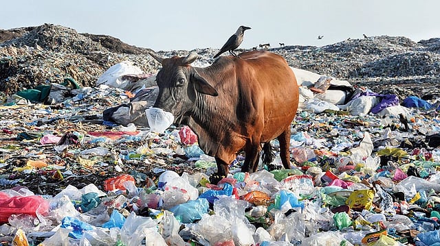 நாகரங்களில் சுற்றித் திரியும் மாடுகள் காகிதங்களை உணவுப் பொருள் என நினைத்து உட்கொள்வதைப் பார்த்திருப்போம். அதேபோல், பிளாஸ்டிக் பைகளில் வீசப்படும் உணவுகளை உட்கொள்ளும் மாடுகள் கூடவே பிளாஸ்டிக் பைகளையும் உட்கொள்கின்றன.