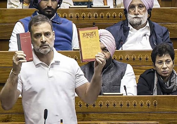 இந்திய அரசியல் சாசனம் ஏற்கப்பட்டதன் 75ஆவது ஆண்டு நிறைவையொட்டி மக்களவையில் இரண்டாவது நாளாக நேற்று சிறப்பு விவாதம் நடந்தது. அப்போது பேசிய எதிர்க்கட்சி தலைவரும் காங்கிரஸ் கட்சியின் மூத்த தலைவருமான ராகுல் காந்தி, ”நான் எனது பேச்சை பாஜக மட்டுமல்லாது ஆர்.எஸ்.எஸ் இயக்கத்தின் மிகப்பெரிய தலைவரின் பேச்சில் இருந்து தொடங்க விரும்புகிறேன். "இந்தியர்களுக்கு அரசியல் அமைப்புச் சட்டம் என்று எதுவும் இல்லை. வேதங்களுக்கு பிறகு இந்திய நாட்டில் மிகவும் வணங்கக்கூடியதாக இருக்கும் மனுஸ்மிருதி நமது பண்டைய காலத்தில் இருந்து நமது பராம்பரியம், நம்பிக்கைகளுக்கு அடிப்படையாக இருக்கிறது. இது நூற்றுக்கணக்கான ஆண்டுகளாக நமது தேசத்தை போற்றுகிறது. இன்று அது தான் நமது நாட்டின் சட்டம்" என்று சாவர்க்கர் கூறியிருக்கிறார். அவர் இந்திய அரசியலமைப்பு சட்டத்தை மனிஸ்மிருதி முந்த வேண்டும் என்று கூறியிருக்கிறார்.