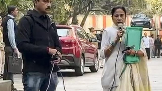 இந்த சூழலில், மமதா தனக்கே உரிய பாணியில் இன்று மதியம், சோதனை நடந்துகொண்டிருந்தபோதே பிரத்திக்கின் வீட்டுக்குச் சென்றார். பச்சைநிறக் கோப்புடன் வெளியே வந்த அவர் செய்தியாளர்களிடம் பேசினார்.