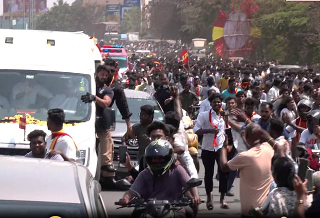 வேலூரில் இன்று நடைபெறும் த.வெ.க. கூட்டத்துக்காக சென்னையிலிருந்து சாலைவழியாக வேனில் பயணம் செய்தார், அக்கட்சியின் தலைவர் விஜய். கூட்டத்துக்காக பல்வேறு கட்டுப்பாடுகளை காவல்துறை விதித்திருந்தது. ஆனால் அது எதையும் பொருட்படுத்தாமல், திருவள்ளூர் மாவட்டம் தொடங்கி விஜய் சென்ற வழியில் ஆங்காங்கே வயல் வெளிகளில் விவசாயிகளின் திட்டுகளைக் காதில் போட்டுக்கொள்ளாமல் இளைஞர்கள் விஜய்யைப் பார்க்க ஆவலோடு திரண்டிருந்தனர். பயிர்களையெல்லாம் மிதித்து அவர்கள் நாசம் செய்ததாக விவசாயிகள் முறையிட்டனர்.