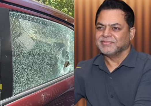 அவருடைய காரின் பின்னிருக்கை கண்ணாடி உடைக்கப்பட்டு உடைப்பதற்குப் பயன்படுத்திய கல் இருக்கையின் உள்ளே இருந்துள்ளது.