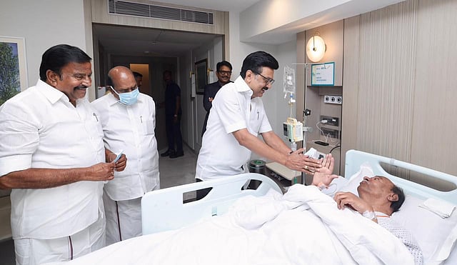 சென்னையில் மருத்துவமனையில் சிகிச்சை பெற்று வரும் பாமக நிறுவனர் ராமதாஸ் மற்றும் மதிமுக பொதுச் செயலாளர் வைகோ ஆகியோரின் உடல்நலம் குறித்து முதலமைச்சர் மு.க.ஸ்டாலின் நலம் விசாரித்தார்.