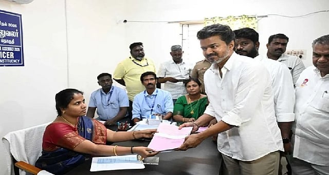 2026 சட்டமன்றத் தேர்தலை முன்னிட்டு பெரம்பூர் தொகுதியில் போட்டியிடும் தவெக தலைவர் விஜய் இன்று (மார்ச் 30) வேட்புமனு தாக்கல் செய்தார்.