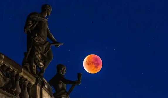 பூமியின் நிழலில் கடந்து செல்லும் போது, நிலவு ஆழமான சிவப்பு நிறத்தில் காட்சியளிக்கும், இது 'பிளட் மூன்' அல்லது "ரத்த நிலவு" என்று அழைக்கப்படும்.