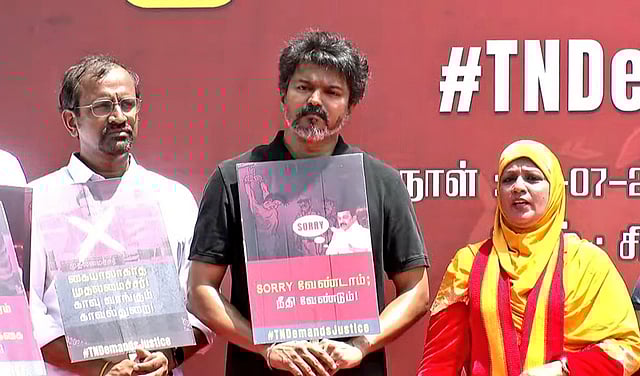 சிவகங்கையில் காவல்துறை சித்ரவதையால் உயிரிழந்த அஜித் குமாரின் உயிரிழப்புக்கு நீதிகேட்டு தமிழக வெற்றிக் கழகம் சார்பில், சென்னை, சிவானந்தம் சாலையில் ஆர்ப்பாட்டம் நடைபெற்றது. ஆர்ப்பாட்டத்தில் விஜய் பேசியதாவது: