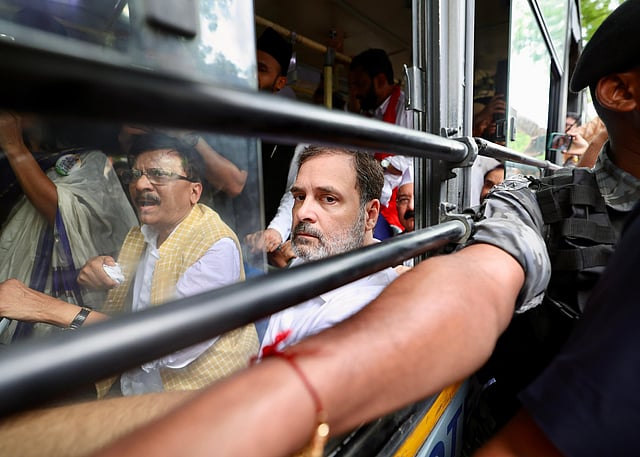 தேர்தல் ஆணையம் நோக்கி பேரணியாகச் செல்ல முயன்ற எதிர்க்கட்சித் தலைவர் ராகுல் காந்தி மற்றும் எம்பிக்கள் கைது செய்யப்பட்டுள்ளனர்.