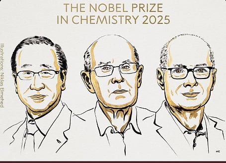 2025ஆம் ஆண்டின் வேதியியலுக்கான நோபல் பரிசு ஜப்பான், அமெரிக்கா, ஆஸ்திரேலியா நாடுகளைச் சேர்ந்த பல்கலைக்கழக பேராசிரியர்கள் மூவருக்குப் பகிர்ந்தளிக்கப்பட்டுள்ளது.