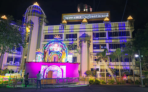அண்ணா பிறந்த நாளை முன்னிட்டு தி.மு.க. வழக்கம்போல முப்பெரும் விழாவைக் கொண்டாடுகிறது. இதையொட்டி தி.மு.க.வின் தலைமையகமான அண்ணா அறிவாலயம் நேற்று வண்ணமயமாக அலங்கரிக்கப்பட்டு, வண்ண வண்ண விளக்குகள் அமைக்கப்பட்டு அந்தப் பகுதியே ஒளிரும்படி செய்யப்பட்டிருந்தது.